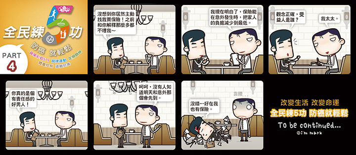 練5功連載part4. – 明天和意外,哪個會先到? 收藏文章 友善列印 收藏文章 傑克自從知道有罹癌的危機后,除了改變生活習慣,更增加了責任的態度,還有哪些傑克會因而改變的呢?! 讓我們一起看下去……. 更多馬克的作品請上 http://markleeblog.pixnet.net/blog 下載附件檔案