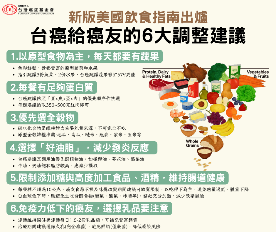 美國飲食指南更新,台癌替癌友整理6大飲食重點: